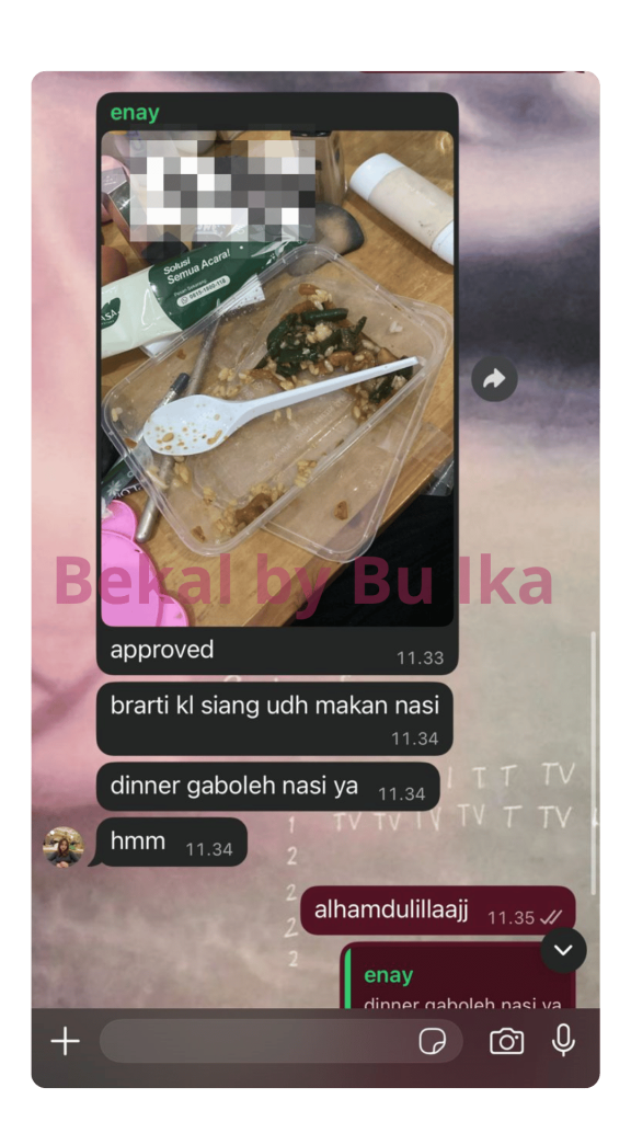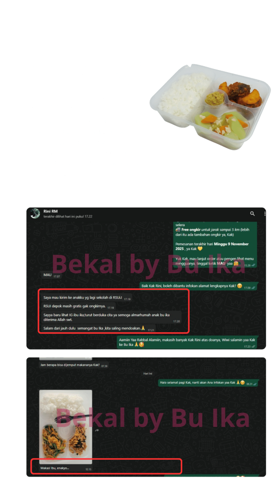 Untuk Kamu Yang Mau Bu Ika Bekalin di Minggu Ini, Bisa Chat Ke Whastapp Untuk Proses Ordernya